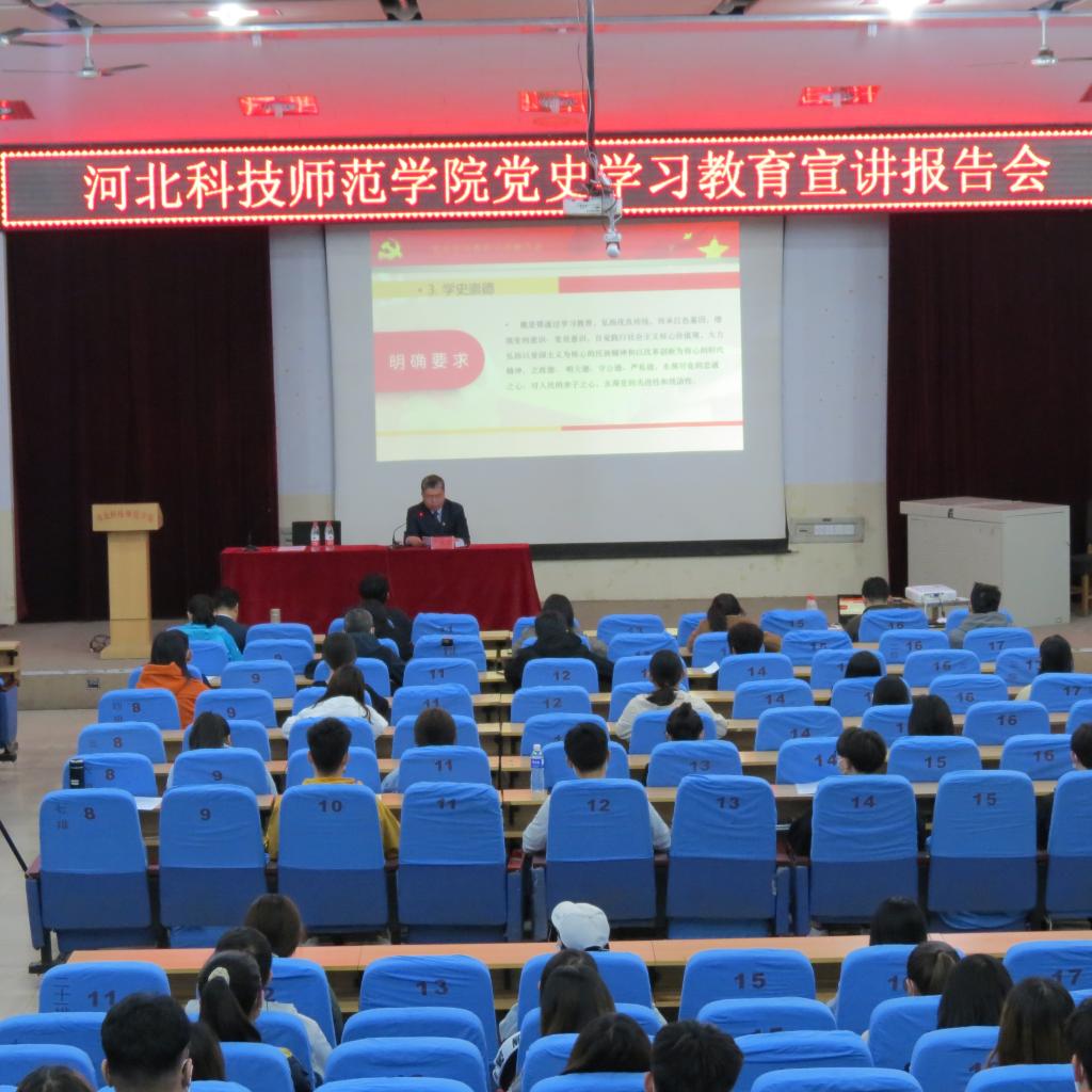 为深入开展党史学习教育,推动党史学习教育各项工作扎实落实,促进全院师生做到学史明智、学史增信、学史崇德、学史力行,4月22日下午,完美体育官方网站邀请校党史学习教育领导小组副组长、党委副书记李佩国通知在昌黎校区学术报告厅为师生作党史学习教育宣讲。学院全体教师及学生代表210人参加报告会。报告会由完美体育官方网站党委书记于明来主持。