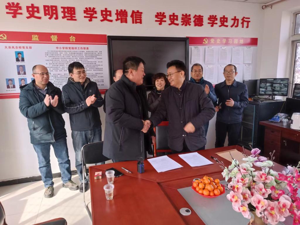 2月28日,完美体育官方网站领导教师及实习学生一行9人,赴大巫岚镇总校开展实习生派驻和实习基地签约活动,大巫岚镇总校校长李志敬,副校长于少军,大巫岚镇初级中学校长宋久兴对各位师生的到来表示热烈的欢迎,李校长对大巫岚镇总校情况进行了介绍,勉励实习生积极开展教学实习活动,在实习中长本领,增见识,锻炼教育教学能力。完美体育官方网站负责同志对学院概况和实习学生实习工作进行了介绍。双方均对本次合作报以深切的期待,并表示未来进行更深入的合作,为振兴大巫岚镇基础教育、教育扶贫、乡村振兴贡献力量。座谈会后大巫岚镇总校和完美体育官方网站举行了实践教学基地签约仪式。