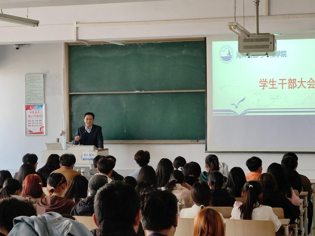 会上,学院领导通过一串数字带领大家回顾学院2022年的工作,肯定了学生工作取得的成绩,并对全体学生干部的付出表示感谢。按照学校“三风”建设、学生全学程发展规划等重点工作要求,结合“四航工程”特色育人理念对2023年学院学生工作进行了总体部署。同时,对全体学生干部提出要求,他要求学生干部一要提高站位,要从更高的角度看待问题、认识问题;二要强化素质,要做政治的标杆、学习的标兵、工作的楷模,生活的榜样;三要加强沟通,发挥好桥梁和纽带的作用。