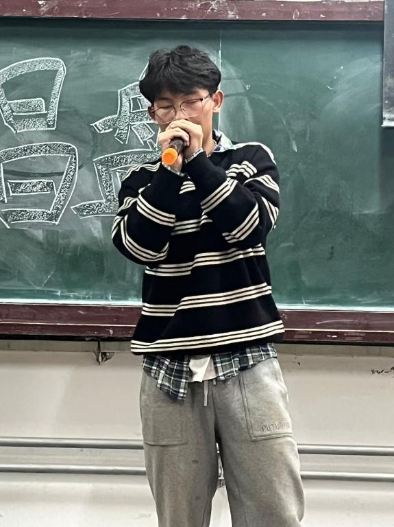 比赛开始,主持人介绍评委及嘉宾阵容。随后选手们便展开了激烈的角逐,台下的观众们刚随着一号选手赖滢冰的《南下》到达了远离世俗嘈杂的世外桃源,便被二号选手刘雅琦的《大鱼》所感染,感受着她歌词中无可奈何的悲楚与落寞,三号选手孙晋海的一句句粤语,台下的观众们又被带入了新的世界......伴随着台上选手激情澎湃的歌唱,台下观众热情洋溢的掌声,比赛迎来了尾声。此时的现场已热血沸腾,比赛的输赢已然不重要,重要的是一位位选手为大家带来的精彩绝伦的演出。最终孙晋海同学获得冠军,推荐参加校级决赛。