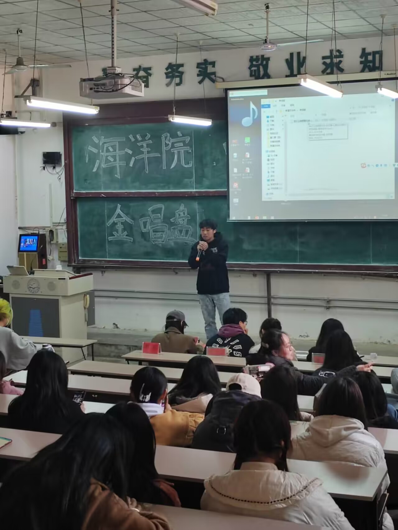 为深入学习贯彻党的二十大精神,丰富学生课余文化生活,展现新时代青年大学生的激扬风采, 3月25日,完美体育官方网站于13阶举办了主题为“海洋逐梦 青春向党”金唱盘校园歌手大赛。